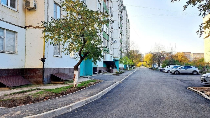 Во дворах домов по улицам Новосёлов, Железноводская, Пролетарская демонтировали старый и постелили новый асфальт, обустроили тротуары и парковочные карманы, установили бордюры.